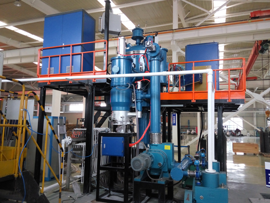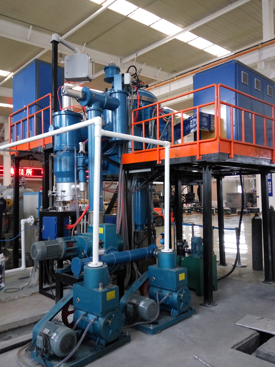 真空感應(yīng)凝鑄爐是利用中頻感應(yīng)加熱原理,在真空或保護氣氛下,將稀有金屬或特種合金在熔煉坩堝內(nèi)熔化后,澆入凝鑄模具內(nèi),凝鑄模具通過電阻加熱進行恒溫保溫,在恒溫狀態(tài)下,由模具升降機構(gòu)通過一定速度緩慢將模具移出保溫感應(yīng)器,通過模具底部托盤水冷及外部水冷罩將金屬液體冷卻凝固;是為各種稀有金屬及特種合金及其它材料的工業(yè)生產(chǎn)和試驗而設(shè)計的;真空感應(yīng)凝鑄爐還具有傳統(tǒng)鑄錠功能,能實現(xiàn)緩冷鑄棒和傳統(tǒng)鑄錠的快速切換。